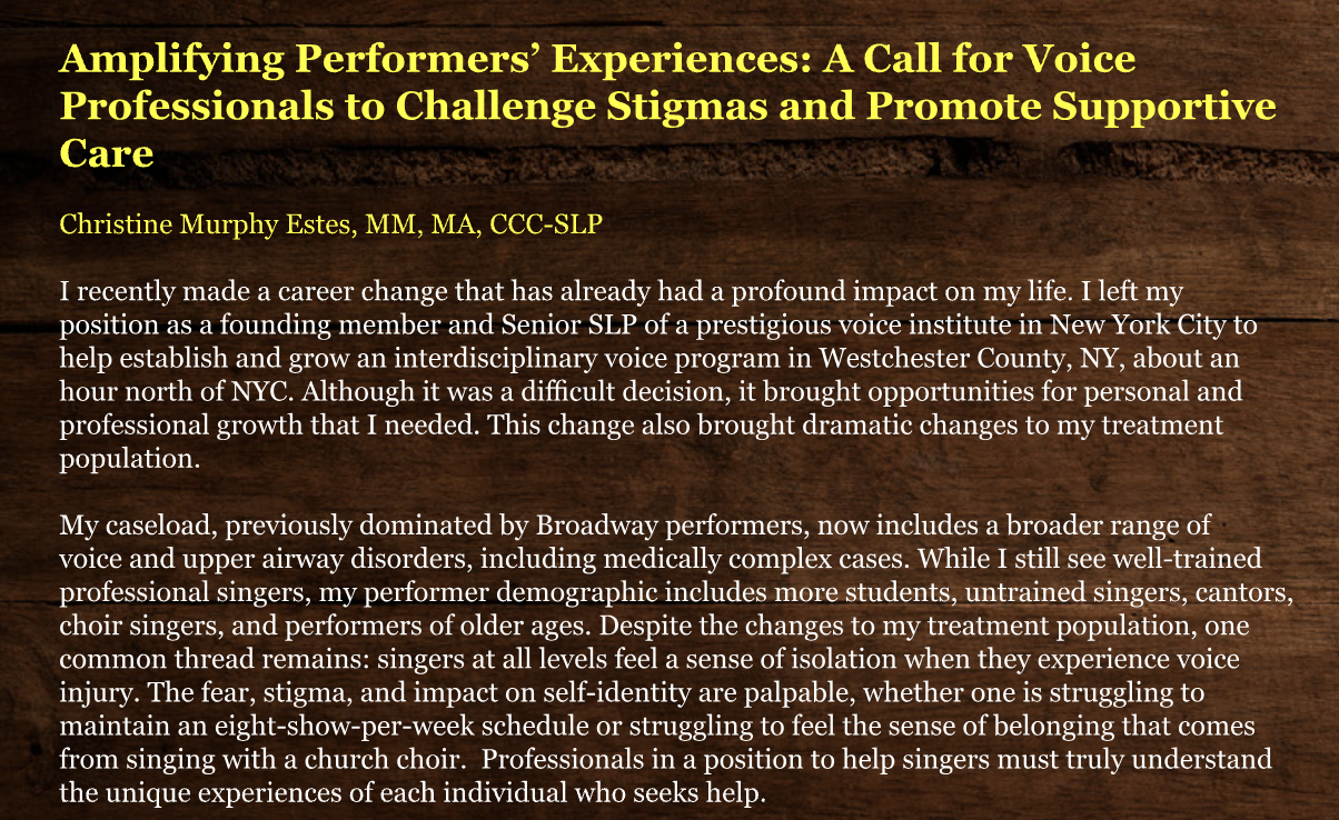 A life in music, from singer to singing voice specialist.